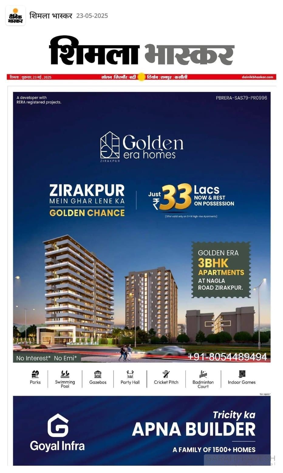 | Golden Era Homes | 3BHK | Prime Zone, Zirakpur | Pay ₹33L Now, Rest on Possession | Gated community, Modern design |