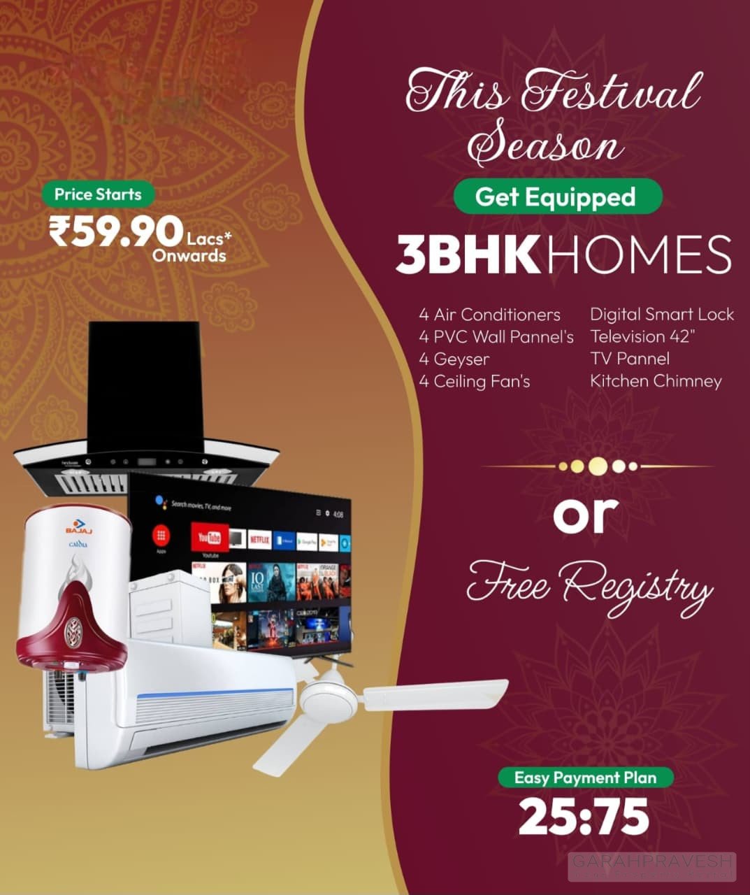 Grab your appliance-rich, festival-ready home—connect with Garah Pravesh today!