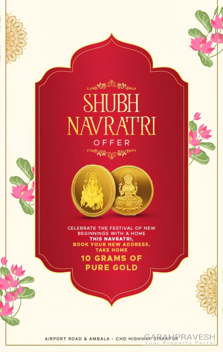 #NavratriPropertyDeals #LuxuryHomeFest #BookAndFly #GoldOnBooking #AssuredGifts #ModularKitchenBonus #WomenEmpowerment #BuyNowPayLater #BigNavratriOffer #TransparentDeals #HomeBuyersFest #GarahPravesh #ChandigarhFlats #ZirakpurPlots #MohaliApartments