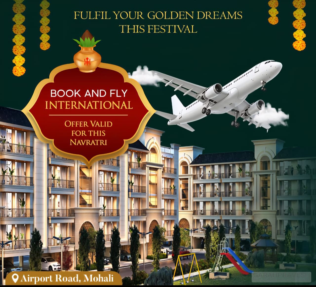 This Navratri, transform the dream of homeownership into reality with Garah Pravesh, your trusted real estate partner on Airport Road, Mohali and beyond. Dive deep into the finest, most transparent festive schemes optimized to deliver value, excitement, and assured gifts—crafted to offer buyers the best returns, security, and joy this festive season. Hurry—limited stocks, time-bound property offers, and monumental savings await!