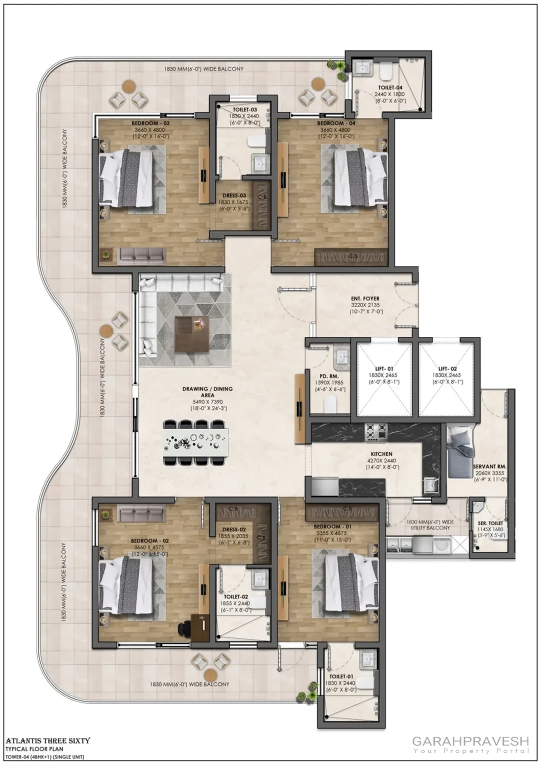 4+1 BHK Penthouse 5200–5320 Sq. Ft ₹4.40–₹4.50 Cr*