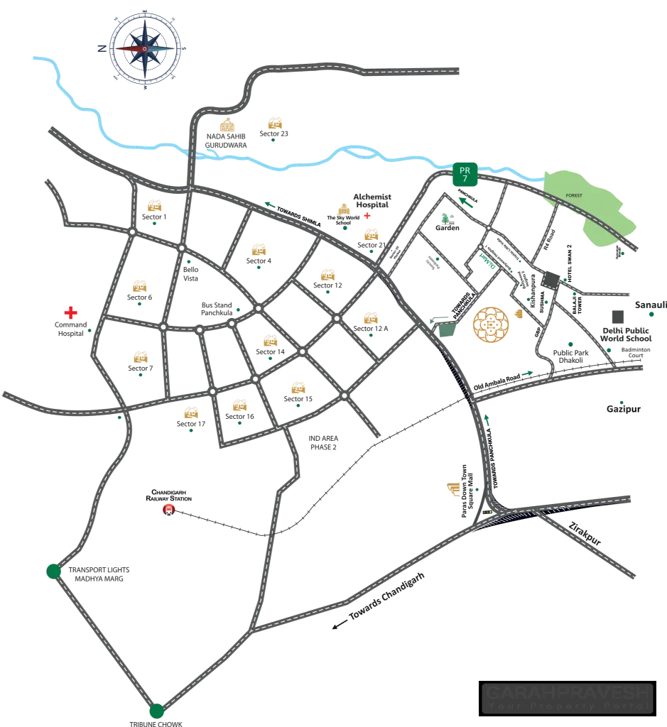 Quick access to Zirakpur, Chandigarh, Peer Muchalla, and PR-7 Airport Road